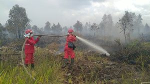 Lahan Perusahaan di OKI Terbakar, Petugas Gotong Royong Padamkan Api