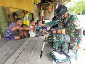Satgas Yonif 512/QY Bantu Obati Masyarakat Yang Terluka