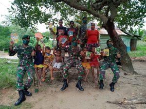 Peringati Hari Buku Nasional, Yonif 411 Kostrad Bagikan Buku Bacaan di Perbatasan RI-PNG