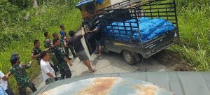Aksi Heroik Anggota TNI di Papua, Satgas Yonif 126/KC Evakuasi Kendaraan Yang Hampir Jatuh Ke Jurang