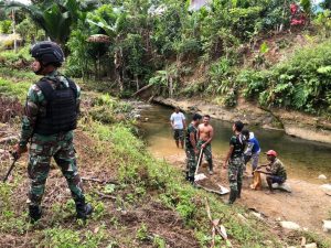 Membantu Masyarakat Perbatasan, Satgas Yonif 126/KC Bersihkan Irigasi di Pegunungan Bintang