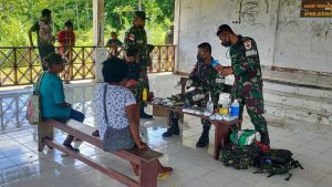 Imbau Masyarakat Patuhi Prokes, Satgas Yonif 512/QY Gelar Pengobatan Masal Di Kampung Perbatasan