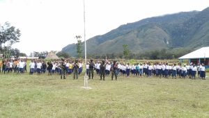 Tanamkan Rasa Cinta Tanah Air Kepada Generasi Muda Papua, Satgas TNI Latihkan Baris-Berbaris
