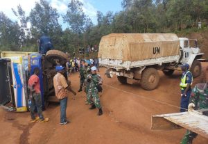 Satgas TNI Konga XXXIX-B RDB Bantu Evakuasi Truk Terguling di Kongo