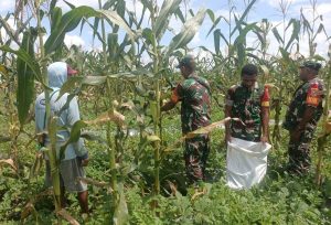 Babinsa Koramil 1710-02/Timika Membantu Petani Merawat Lahan Jagung Di Wilayah Binaan