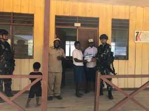 Satgas Yonif Raider 142/KJ menghadiri undangan perlombaan dari Pihak Sekolah SMP Yakpesmi Eklesia Yabema dalam rangka memperingati bulan bahasa y