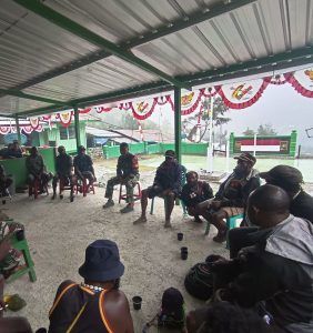 Bertempat di Kampung Milawak, Babinsa Koramil 1714-05/Beoga melaksanakan kegiatan Komunikasi Sosial (Komsos) dengan tokoh masyarakat setempat di
