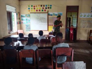 Babinsa Koramil 1710-01/Kokonao Turut Bantu Mengajar Di Sekolah