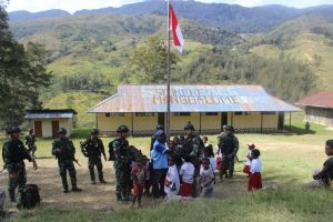 Minim Tenaga Pendidik Di Pegunungan Tengah, Satgas Yonif Mekanis 203/AK Menjadi Guru