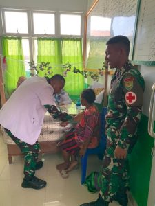 Satgas Pamtas Yonif Raider 142/KJ Bersinergi Dengan Puskesmas Elelim Cek Gizi Anak