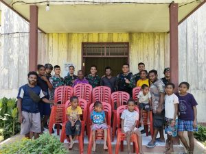Dalam rangka meningkatkan kehikmatan dalam melaksankan ibadah minggu di gereja, personel Satgas Yonif 126/KC Pos Kalilapar menyumbangkan kursi pl