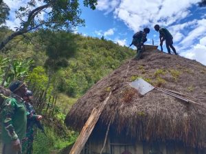 Tak Kenal Lelah, Kembali Satgas Yonif Raider 142/KJ Membangun Ruang Jemaat Yang Roboh