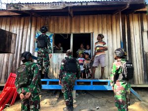 Satgas Yonif Raider 600/Modang Bantu Padamkan Api Yang Melanda Pemukiman Kota Agats