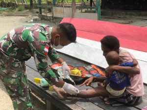 Satgas Yonif Mekanis 203/AK Adakan Pelayanan Kesehatan Gratis Bagi Masyarakat