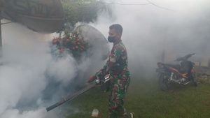 Berantas Bibit Malaria , Satgas Yonif 126/KC Laksanakan Fogging Keliling Kampung