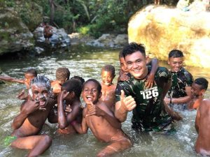 Cerianya Anak-Anak Papua Saat Personel Satgas Yonif 126/KC Ajak Bermain di Sungai