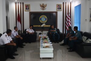 Kepala Zona Bakamla Timur Laksma Bakamla Dr. Drs. Haris Djoko Nugroho, M.Si. melakukan kunjungan kehormatan ke Gugus Tempur Laut (Guspurla) Koarm