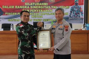 Dansatgas Yonif 126/KC Letkol Inf Dwi Widodo, S.H., M.Han. menerima piagam penghargaan dari Kapolres Keerom AKBP Christian Aer,