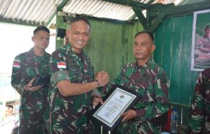 Pemberian Penghargaan Dankolakops 172/ PWY Kepada Personel Satgas Yonif 126/KC