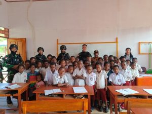 Minat Belajar Anak Tolikara Meningkat, Berkat Satgas Pamtas Yonif Raider 142/KJ Bagikan Tas dan Buku