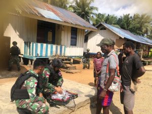 Jaga Kesehatan Masyarakat Perbatasan Papua, Satgas Pamtas Yonif 126/KC Berikan Pengobatan Keliling Kampung