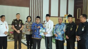Walikota Prabumulih Ir H Ridho Yahya MM, didampingi Kepala Dinas PMD Ahmad Fauzan Akmal SSTP MM melakukan penyerahan Dana Desa (DD) tahun 2023 di