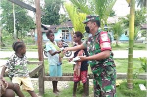 TNI Bagikan Masker dan Sarung Tangan Gratis Kepada Warga Mimika Papua