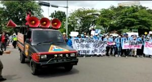Mahasiswa Terus Memaksa Ingin Masuk Kedalam Kantor DPRD Provinsi Sumsel
