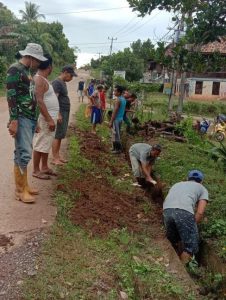 Pemdes Tanjung Beringin dan Warga Gotong Royong Bersihkan Bahu Jalan