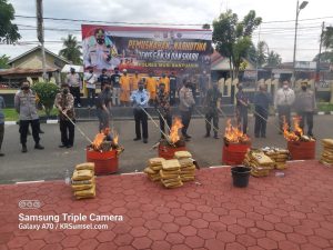Polres Muba Musnahkan 100 Kg Ganja dan 1,7 Kg Sabu-Sabu