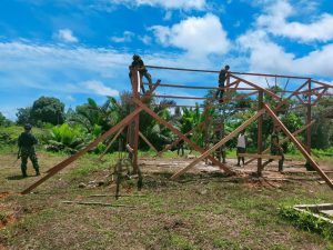 Personel Satgas Yonif 126/KC Bangun Sarana Nonton Bersama Untuk Masyarakat Perbatasan