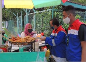Pekerja Muda Pertamina Bagi Paket Bantuan ke Asongan Lapangan Merdeka