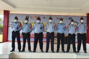 Kepala Lapas Kelas IIA pemasangan Hand Badge Satgas Penguatan WBK/WBBM kepada seluruh Ketua Pokja
