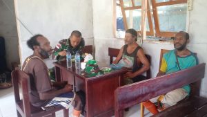 Prajurit Pamtas Yonif 125 Dampingi Warga Membuat Pakaian Adat Suku Yeinan Papua