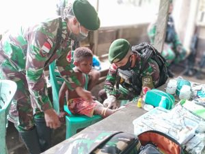 Satgas Pamtas Yonif 413 Kostrad Gelar Pelayanan Kesehatan Kepada Warga Kampung Sangke
