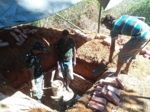 Personel Satgas Yonif 125/Simbisa Gotong Royong Bersama Warga Bangun Enam Unit MCK Umum