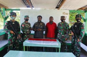 Satgas Pamtas RI-PNG Yonif 413 Kostrad Terima Senjata Rakitan Laras Pendek Kaliber 5.56 mm