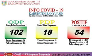 COVID-19 di Banyuasin Bertambah Lagi, Total Hari ini 54 Orang Terkonfirmasi Positif