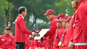 Presiden Joko Widodo menyerahkan bonus kepada atlet-atlet Indonesia yang sukses meraih juara umum pada ASEAN Para Games (APG) 2023.