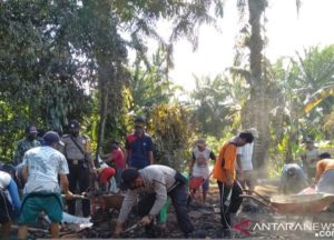 Polisi-TNI Mukomuko Bersihkan Puing-Puing Kebakaran Rumah Warga