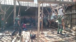 Rumah Rusak di Karangsono Akibat Puting Beliung, TNI Koramil 12/Mranggen Bantu Evakuasi Hingga Perbaikan