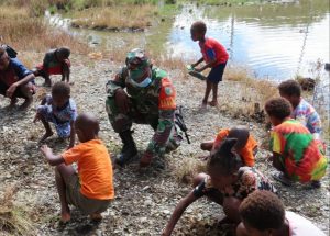Tanamkan Pola Hidup Sehat, Babinsa Kuala Kencana Bersama Guru dan Siswa Gelar Pembersihan Sekolah