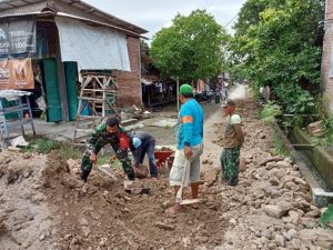 Wujud Kemanunggalan, Babinsa Sidoharjo Bantu Perataan Jalan Warga