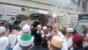 Massa aksi unjuk rasa yang berlangsung di halaman Masjid Agung seputaran bundaran Air Mancur, Jumat (16/9/2022) siang tujuan untuk menuntut kenai