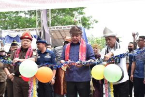 Pelajar Sekolah Menengah Kejuruan (SMK) mengikuti festival seni budaya Sumatera Selatan tahun 2022 yang digelar di Taman Segitiga Emas Kayuagung