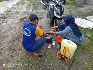 Sinergi Babinsa dan Perangkat Desa Lakukan Penyemprotan Disinfektan di Perumahan Warga