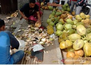 Pedagang Buah Kelapa Muda di Ambon Laris