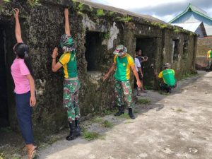Dalam rangka melestarikan sekaligus menjaga keindahan situs cagar budaya, Pos Ramil Pelauw yang tergabung dalam Satgas Kodim Maluku Yonarmed 1 Ko
