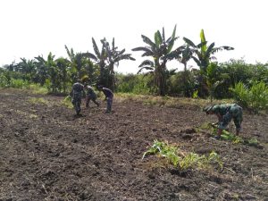 Stabilkan Ketersediaan Bahan Pokok Makanan, Satgas Yonif MR 413 Bantu Warga Perbatasan RI-PNG Tanam Pisang