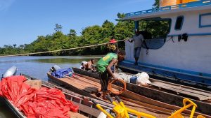 Warga Distrik Kawagit Bantu Longboard Untuk Angkut Material TMMD